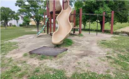 公園の遊具の下など利用頻度が高い場所では、踏圧により土壌が硬くなるなどの理由で、天然芝が根付かないことがあります。そこで、適度なクッション性を持ち、景観を保つことができる人工芝が公園で採用されるケースが増えています。