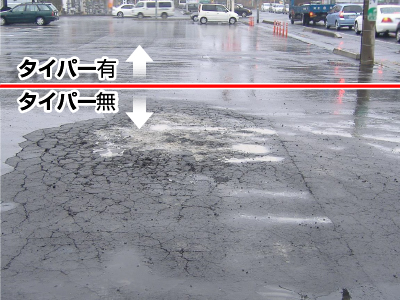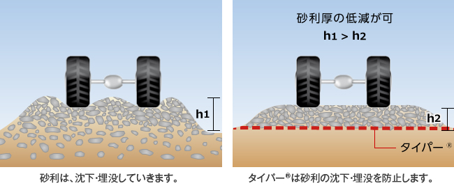 交通量が少ない・地盤の固い場所ではタイパー®を敷砂と路床の間に敷設することで、敷砂の沈下を抑制し平坦性の保持をサポートします。