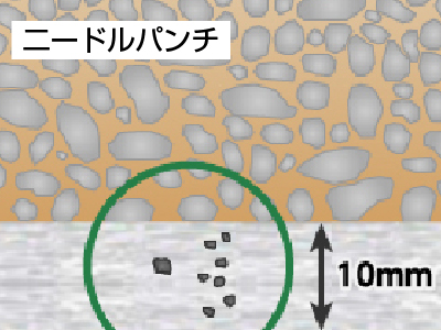 極太繊維(40~50μm)を 各交絡点で融着しており、耐衝撃・耐引張り・耐引裂きに優れます。