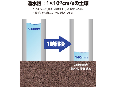 タイパー®は薄いので、ニードルパンチのように層の中に土が詰まることは極めて稀です。また、層の圧縮による透水性の劣化も非常に軽微です。