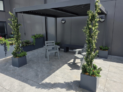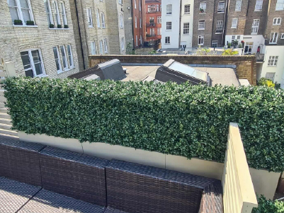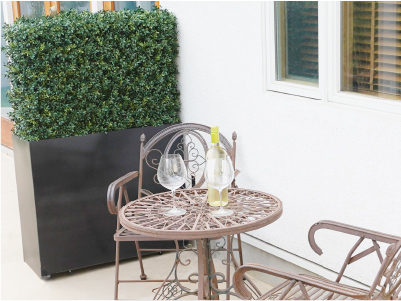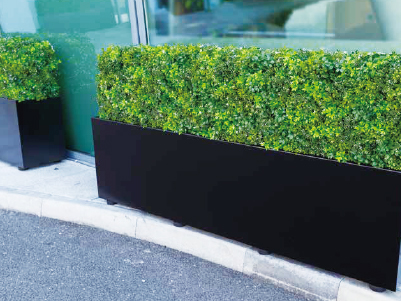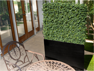 立体的なフレームに人工植物が組み込まれた垣根。簡単に設置できるので、空間に緑を取り入れるのに最適です。