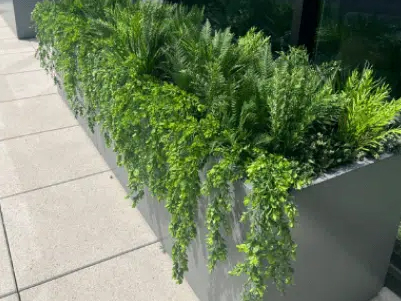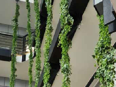 プレミアム品質の吊り下げ式のつる性人工植物。天井や柱を緑豊かに飾り、剪定の必要もなく、最小限のメンテナンスで美しい状態を保つことができます。